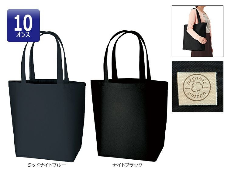 オーガニックコットンを使用して作られたトートバッグLです。サイズは約42×38×13cmで持ち手は肩掛けできる長さがあり内側には鍵など小物類を入れるのに便利な内ポケット付きです。農薬や化学肥料などを3年以上使わず、有機農法で育てられたオーガニックコットンから作られている地球や働く人々にとってもやさしいバッグです。本体カラーはダーク系2色からお選び頂けます。フルカラーでの名入れ印刷に対応しておりますのでぜひご利用下さい。大きめサイズなので通学バッグやマザーズバッグにも最適!