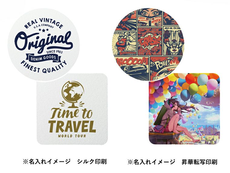 シルク印刷は広い範囲の印刷に最適な印刷方法です。トートバッグやタオルなどへ大きくプリントできるため、様々なデザインが印刷できるので表現力の幅が広がります。またコットンバッグなどでは2色・3色などの多色印刷も可能です。印刷部分の耐久性はほかの印刷方法に比べ、比較的高いため最もスタンダードな印刷方法です。