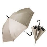 閉じる際に外側と内側が逆方向に折りたたまれる構造の傘です。これにより濡れた面が内側に収納されるため、手や衣服、車内が濡れにくいのが特徴です。車の乗り降りの際も狭い空間で傘を開閉できるのでとても便利です。また、閉じた際に自立するデザインのものが多く、傘立てがない場所でも立てておけるのが利点です。通常の傘と比べて骨が多いので耐久性や耐風性に優れていますが、その分やや重めでかさばりやすい欠点もあります。機能的な傘として注目されています。